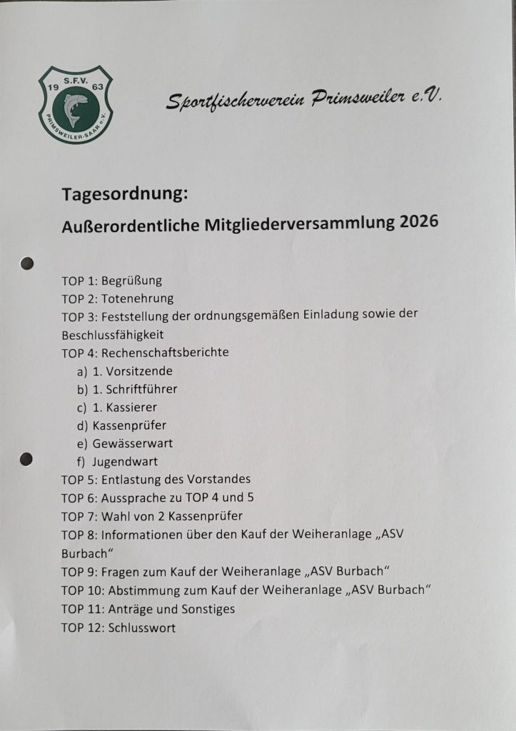 Liebe Mitglieder des Sportfischervereins Primsweiler e.V.,